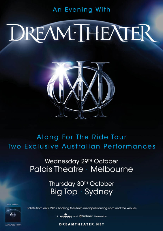 American progressive metal band Dream Theater have a legion of loyal fans willing to undertake epic live performances that would require a packed lunch for the casual fan. Promising a three hour performance for an evening with the progressive heroes, the duration was in keeping with previous tours here, sans support act. Wandering into the venue, a large projection screen in front of the stage welcomed all with eager fans crowded down the front as an ambient keyboard wash filled the air. Images of various constellations and galaxies entertained many including any budding cosmologists. Dream Theater’s most recent visit was at the tail end of their ‘Along for the Ride’ world tour and given they only visited Melbourne and Sydney, it was well attended. As the venue filled up, a loud fanfare of pomp blasted across the PA providing a well made collage of Dream Theater’s impressive back catalogue cover artwork to kick off the two part performance.